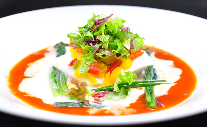 秋の味覚「もみじ鯛」を香草とともにふっくらと蒸し上げたヴァプール。